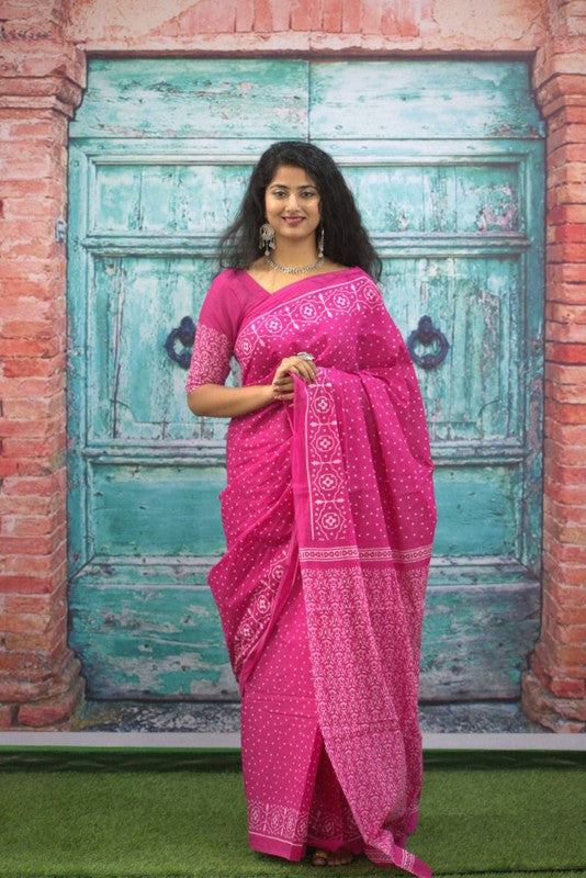 Luxurious Mulmul Cotton Saree: Lightweight & Breathable, 6M with Blouse Piece ARTICLE NO-51
