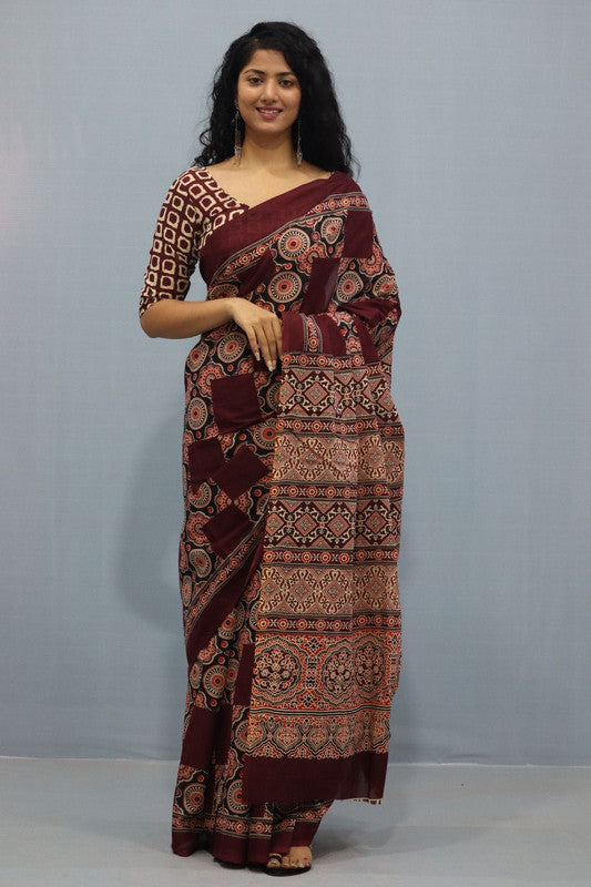 Luxurious Mulmul Cotton Saree: Lightweight & Breathable, 6M with Blouse Piece ARTICLE NO-19