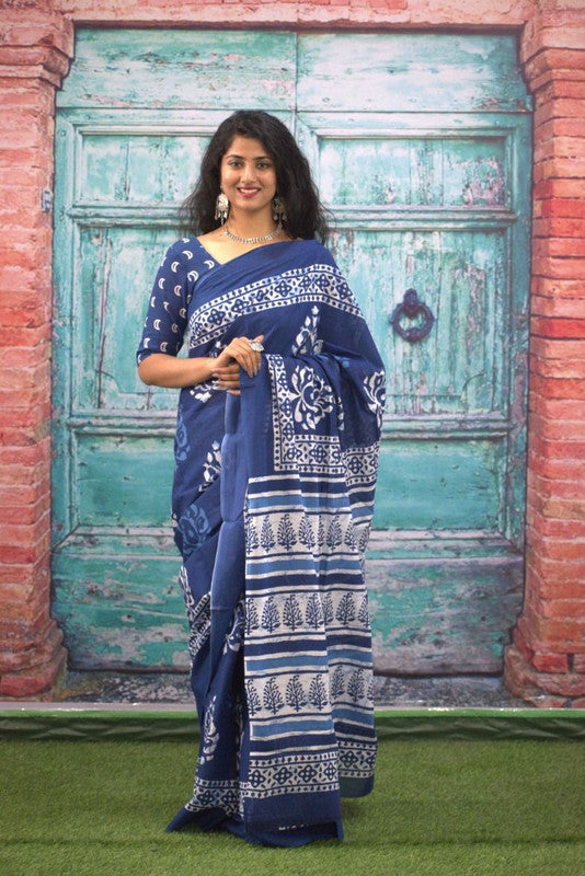 Luxurious Mulmul Cotton Saree: Lightweight & Breathable, 6M with Blouse Piece ARTICLE NO-3