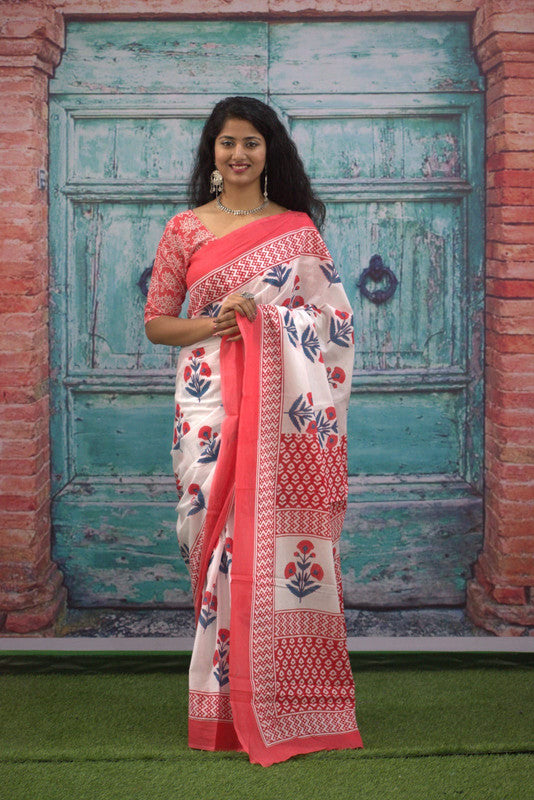 Luxurious Mulmul Cotton Saree: Lightweight & Breathable, 6M with Blouse Piece ARTICLE NO-3