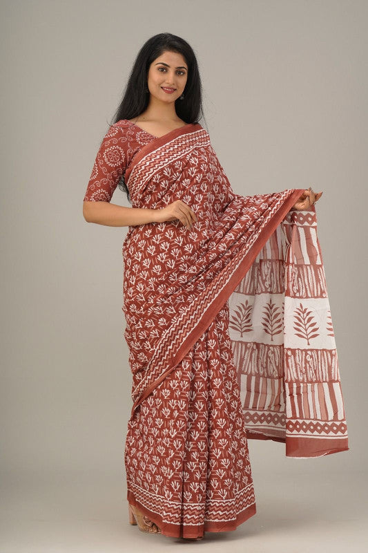 Luxurious Mulmul Cotton Saree: Lightweight & Breathable, 6M with Blouse Piece ARTICLE NO-3