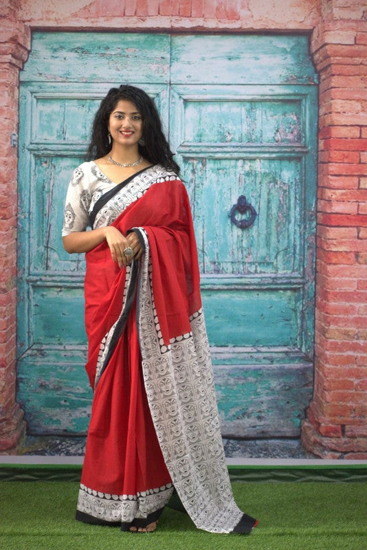 Luxurious Mulmul Cotton Saree: Lightweight & Breathable, 6M with Blouse Piece ARTICLE NO-56